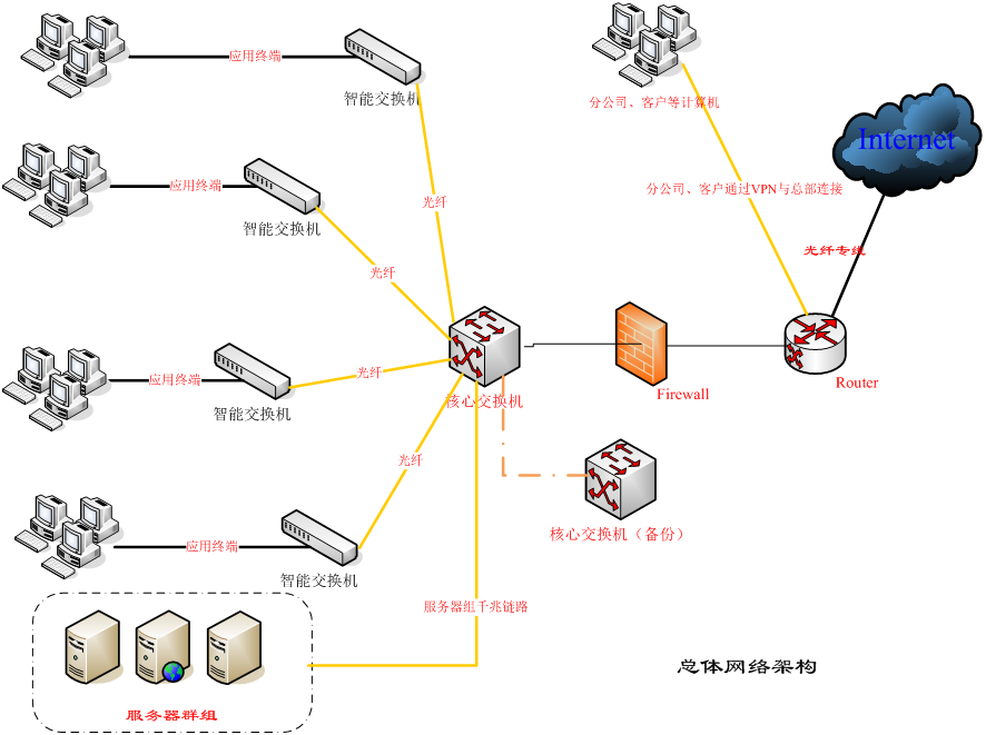通過合理規(guī)劃設(shè)計,建設(shè)完成了信息中心機房建設(shè)和各樓層的網(wǎng)絡(luò)覆蓋,滿足了******5層樓的網(wǎng)絡(luò)接入,實現(xiàn)了******商家和物業(yè)辦公網(wǎng)的有效隔離。整個項目已于2014年8月交付使用。